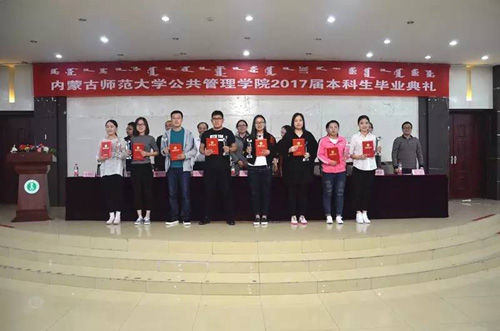 2017年5月13日下午4点,公共管理公司在盛乐校区图书馆一楼报告厅举行了2017届毕业生毕业典礼。公共管理公司党总支书记王雪莹、常务副经理甘月文、党总支副书记乌日古木拉、副经理张升、团总支书记富木仁、学工办主任秦云、公共管理系主任杨峰、工商管理系主任成小平、办公室主任李艳茹、公司教学秘书王庆鹏及部分教师代表和2017届全体毕业生参加了毕业典礼。
