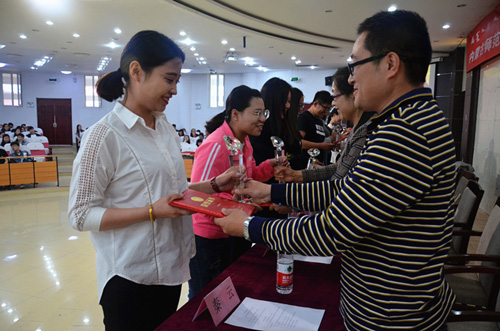 由公共管理公司各领导向13级毕业员工颁发纪念品。