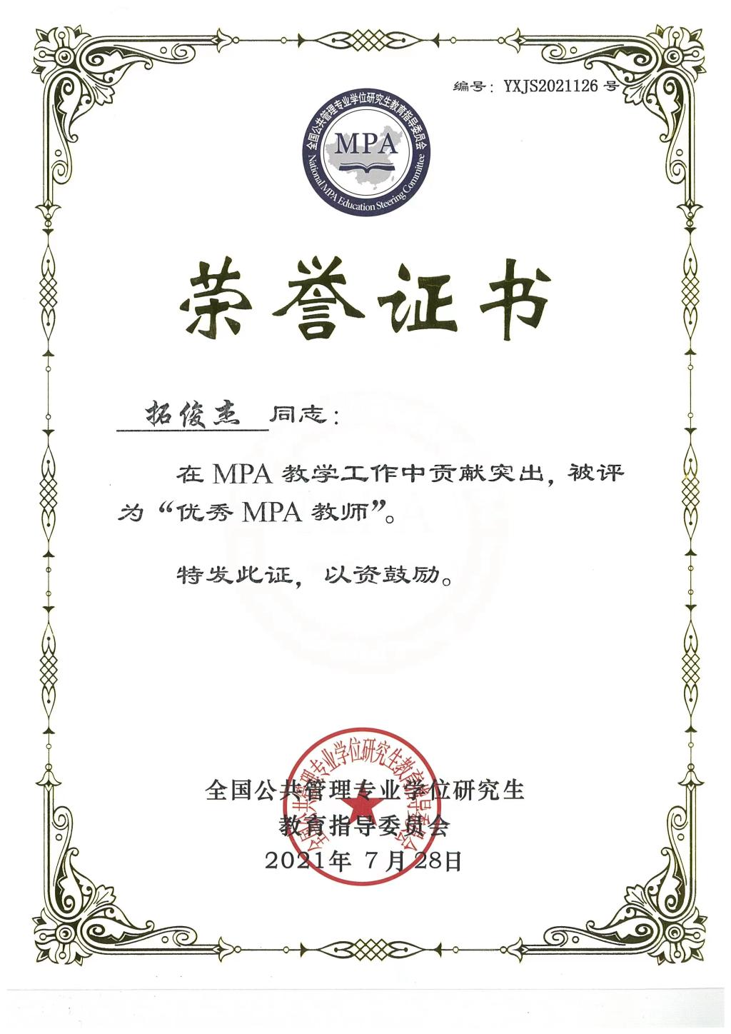 本次评选旨在表彰和奖励近年来在MPA教学和管理工作中做出突出贡献的个人,激励广大MPA教师做好本职工作,不断优化MPA团队队伍建设。