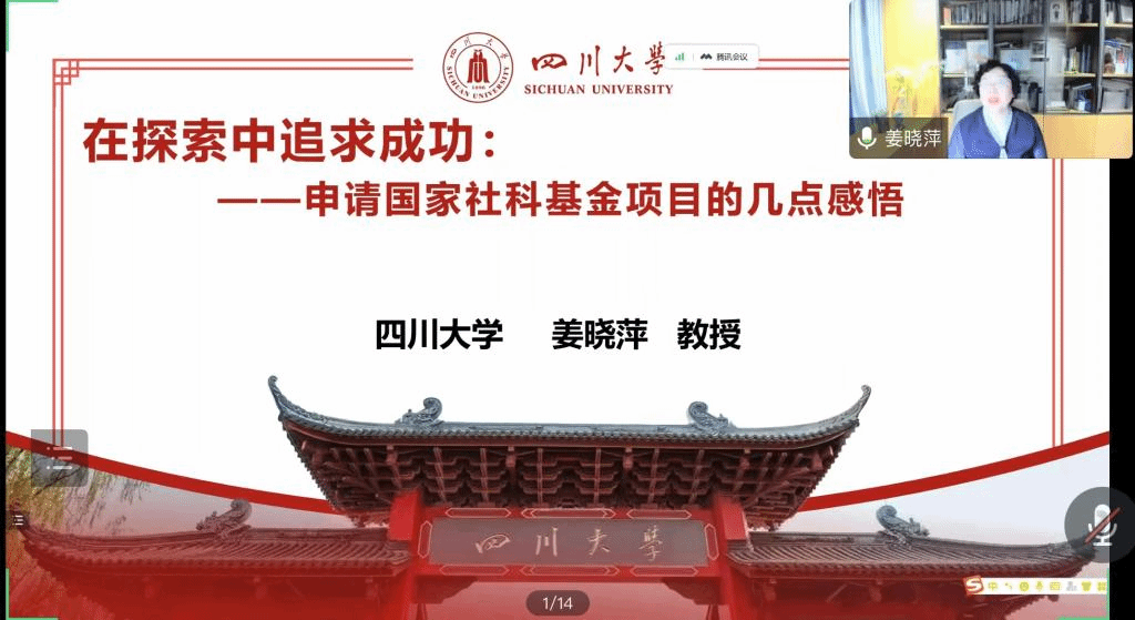 2023年4月12日,公司邀请四川大学公共管理公司博士生导师、国务院学科评议组成员、全国MPA教指委委员、国家万人计划入选者姜晓萍教授做客云端,开展题为“在探索中追求成功——申请国家社会科学基金项目的几点感悟”的专题学术讲座。公司领导、全院教师及公司部分学术型硕士研究生和MPA研究生160余人参加,讲座由副经理王永明教授主持。本次讲座既是公司“公共管理与公共政策”系列学术讲座之一,也是公司老师冲击国家社会科学基金项目的活动之一。