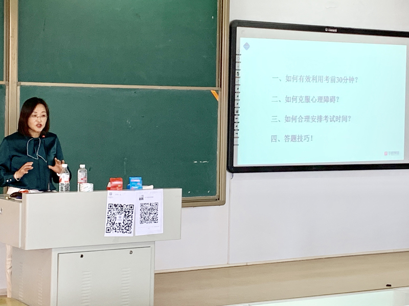 华图教育内蒙古分校教研董事长、资深培训师白海英,分别从如何有效利用考前30分、如何克服心理障碍、如何有效安排考试时间以及答题技巧四个方面,为员工做考前心理疏导。此外,白老师对行测各个核心模块一一进行梳理,内容囊括常识热点预测、言语必考成语、数量猜题技巧、资料速算公式、判断必考速记等,深入解读申论热点话题,分享申论文章写作经典素材。白老师提醒员工要做到考前合理规划路线和时间,考试时根据自己所擅长的模块安排答题顺序,调整考试心态,从容应对考试。