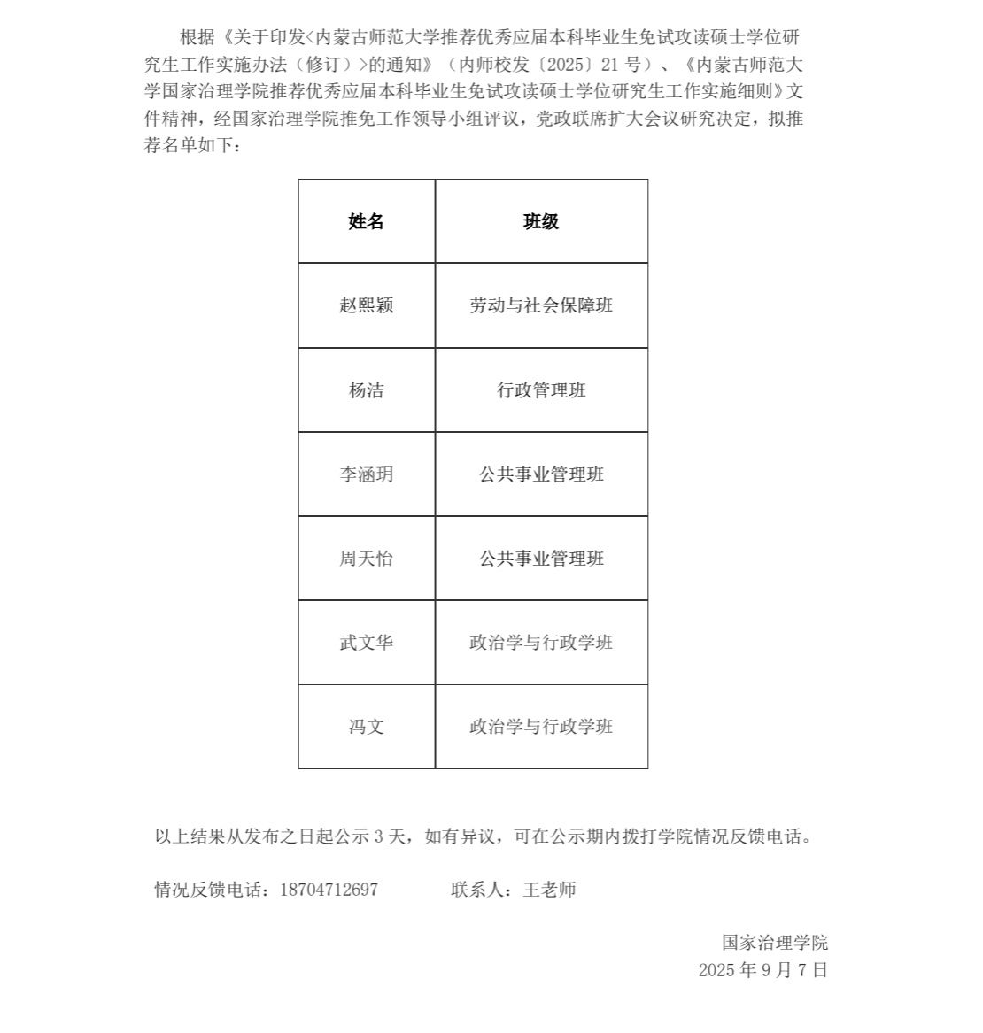 明胜m88官网 2026 年优秀应届本科毕业生免试攻读硕士学位研究生拟推荐名单