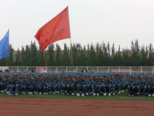 开学典礼仪式结束后,公司2013级新生们的军事训练正式开始。新生们在教官的带领下来到训练场地,遵照教官的指示开始训练。