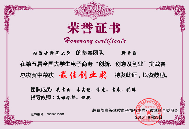 公司积极与大赛组委会和自治区组委会保持联系,为同学们争取更多机会。假期中,在获得组队参加全国总决赛的通知后,在时间十分紧张、任务十分繁重的情况下,部分公司领导、老师和同学放弃了休息时间,夜以继日,组织人员、策划选题、撰写文案、反复演练、不断调整完善思路、请专业人员指导PPT演示文稿的制作、多次组织院内外专家评审、精心选择参赛服装,等等,用不到一个月的时间,完成了其他参赛队四个月、一年甚至更长时间的准备工作,最终公司组织的“新奇乐团队”不负众望,在全国总决赛(现场赛)中获得了“二等奖”和单项奖“最佳创业奖”的优秀成绩,为公司和自治区赢得了荣誉。为此,公司领导、指导教师和工作人员放弃了假期休息,投入了大量的时间和精力,开展了卓有成效的备赛工作。其中,葛根塔娜老师牺牲了原先安排的个人重要事项时间,王雪莲、李艳茹老师不辞辛苦,全面落实参赛的各环节工作,杨艳老师虽远在外地,但也通过电子邮件对文案多次进行指导,专家组的老师多次现场指导,提出了许多中肯意见……在院领导的带领下,大家辛勤工作,为公司优秀成绩的取得提供了重要保证。