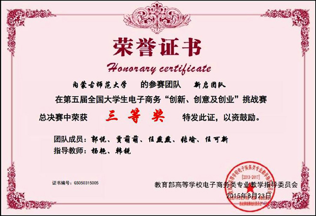 继在第五届全国老员工电子商务“创新、创意、创业”挑战赛内蒙古自治区选拔赛中取得优异成绩后,公司又在该赛事全国总决赛中获得佳绩。