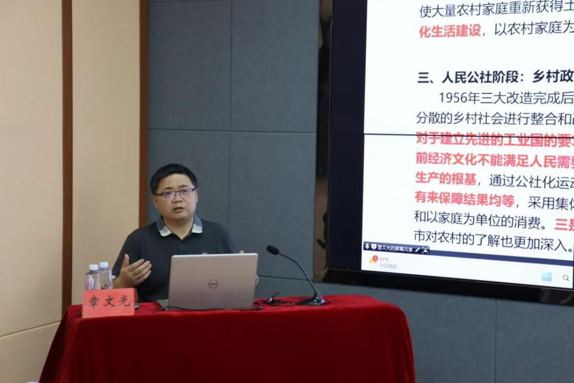 活动第二阶段,举行教育部“精准扶贫与乡村振兴课程群虚拟教研室”名师示范课,章文光教授以“乡村治理‘三治融合’的探索”为题做主旨演讲。章教授系统阐述了“自治、法治、德治”相辅相成的乡村治理体系,通过鲜活的案例与详实的数据,为未来的乡村治理实践提供了宝贵的理论支撑与实践指南;同时,分别从民族文化传承、生态环保与可持续发展、区域经济发展等维度,分享了其独到见解与显著成就。最后,章教授指出,面对乡村振兴的新机遇与新挑战,应进一步加强跨校合作,深化理论研究,加速成果转化,为构建更加和谐、繁荣的乡村社会贡献智慧和力量。